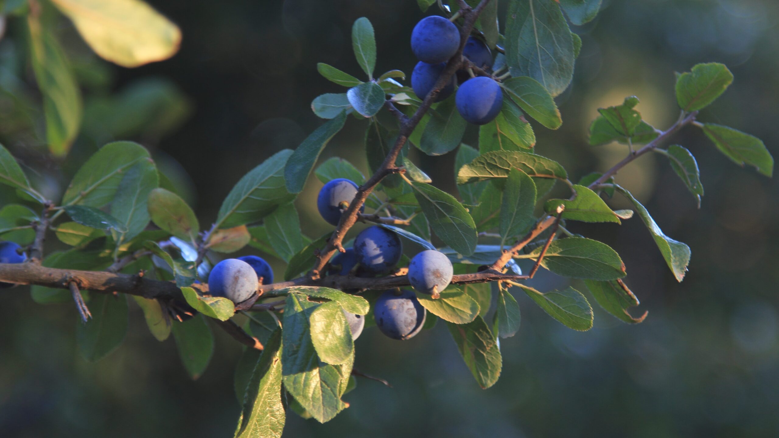 Die Schlehe ist ein Wildobststrauch mit dekorativen Blüten im Frühling und tiefblauen Früchten im Herbst. Nach dem ersten Frost werden die Beeren milder und eignen sich für Likör, Marmelade oder Gelees. Sehr pflegeleicht, windfest und winterhart – ideal für Naturfreunde.